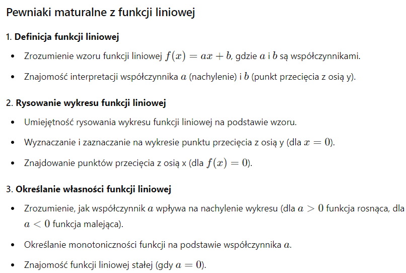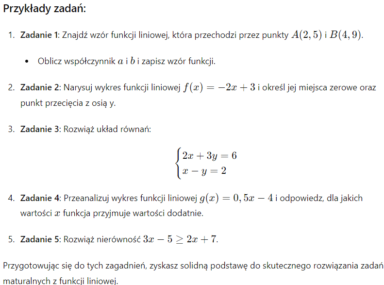 Przygotowując się do tych zagadnień, zyskasz solidną podstawę do skutecznego rozwiązania zadań maturalnych z funkcji liniowej.